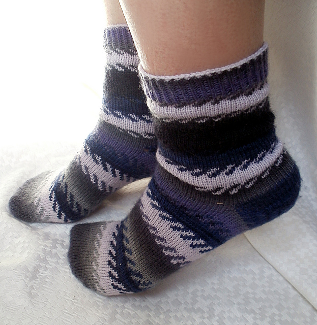 And after those three were finished, I was so happy with clearing out my wips that I took another sip (sock in progress). This one was a test knit, and I never made a mate for the first poor, lonely sock. This first sock is now happily ever after with it's mate!